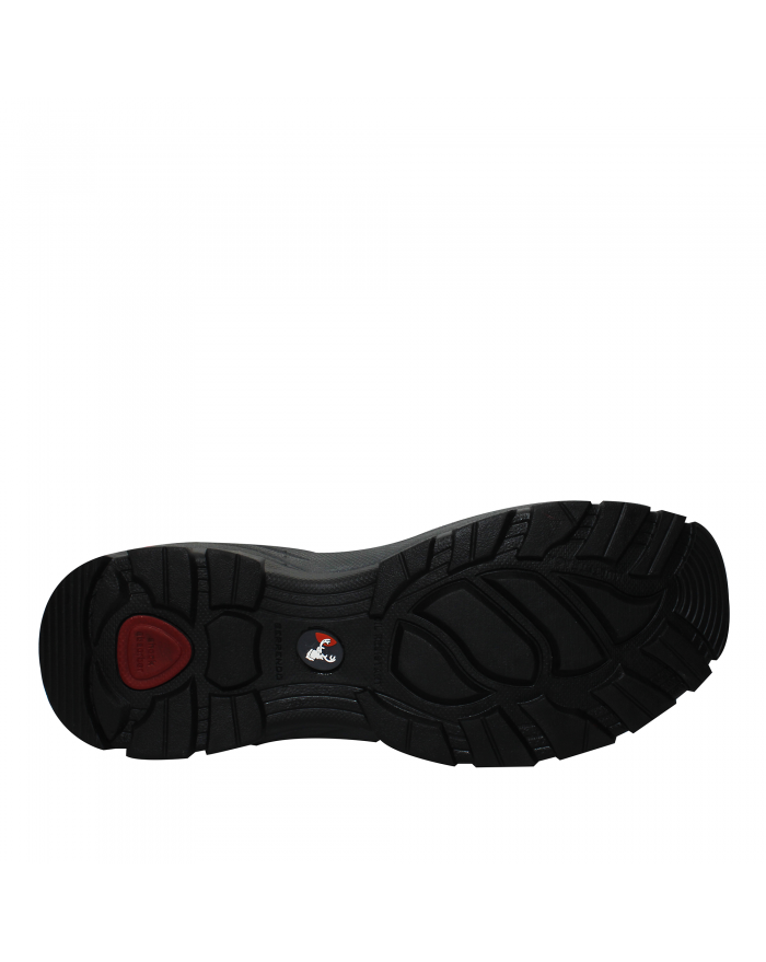 Suela de doble densidad, la parte superior de la suela (entre-suela) está procesada en Phylon compuesta de E.V.A. con hule que la hace confortable, flexible y ligera, con muy buenas propiedades de absorción de impactos; El piso o patín de la suela es de hule vulcanizado más Nitrilo especial para uso rudo y áreas con derrama de aceites, de buena resistencia al calor y corrosión, baja deformación por compresión, excelente resistencia a la absorción de agua, estable en temperaturas extremas (-20°C a 100°C), muy resistente a hidrocarburos alifáticos, aceites vegetales y minerales, grasa y aceites animales, buena resistencia a la abrasión y desgarre, ideal para áreas de mantenimiento y centros de maquinado, pavimentos, asfaltos, etc. Utilizada en sistemas de fabricación strobel pegado.
