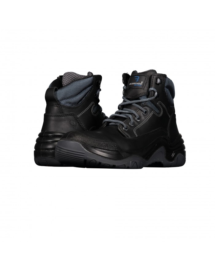 Media bota Berrendo Biotec negra. Modelo con superficie lisa. Tecnología dri-lex para el control de la humedad y punta reforzada de aluminio. Plataforma de 4cm. Hecho de piel, forro de material textil y plantilla acolchada; suela de caucho antiderrapante con relieves: incluye planillas ajustables.