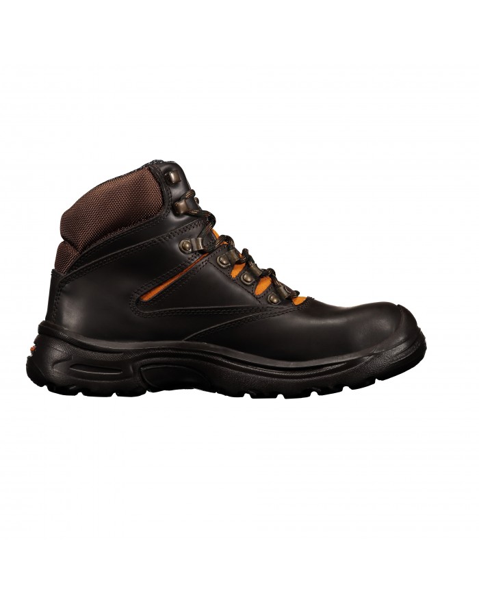 Calzado Berrendo modelo 340 piel Buck, casco de acero, color café y duela tundra. Tiene un forro antibacterial, plantilla antifatiga para una jornada buena de trabajo.
